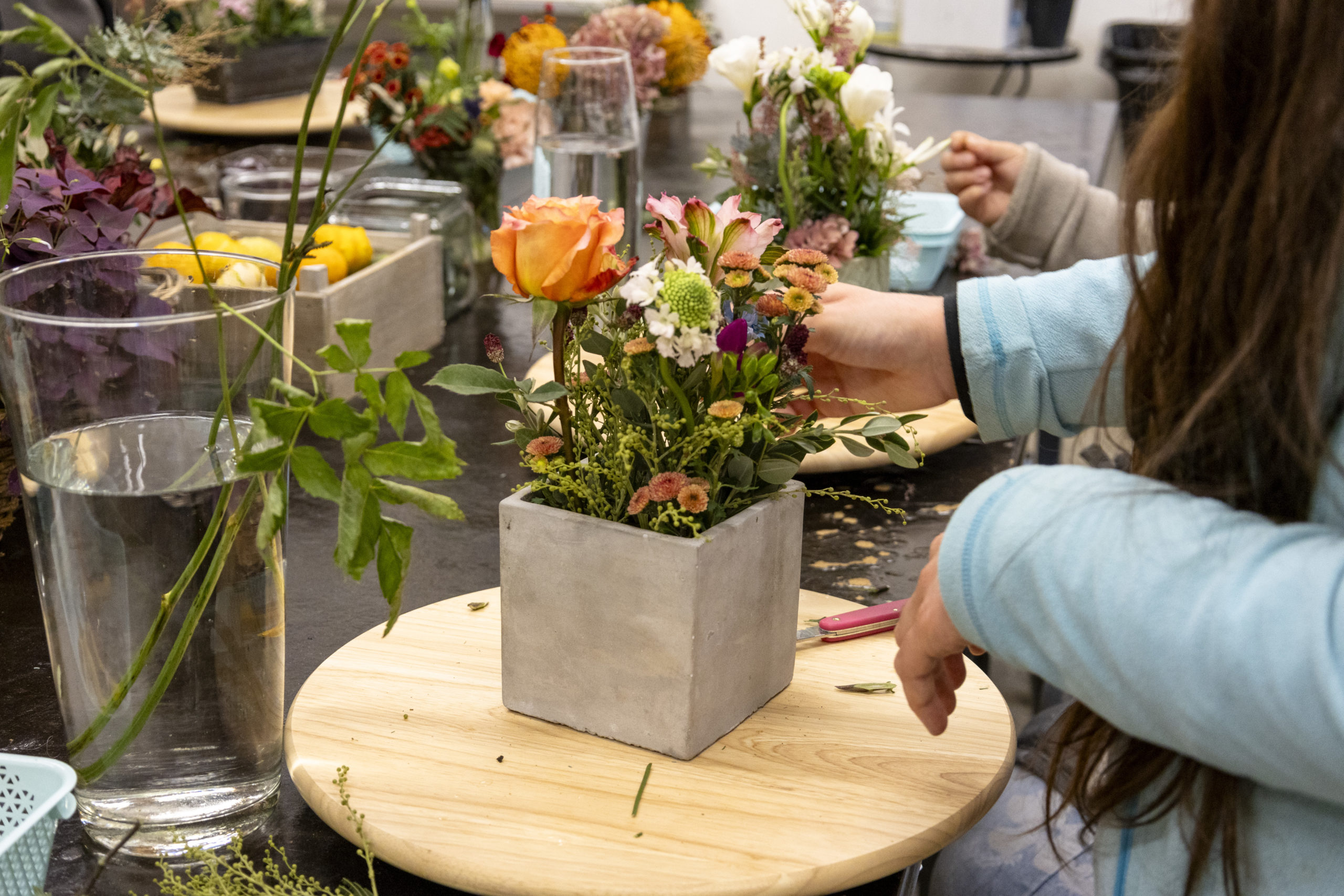 Situé à l’entrée de l’Institution, notre espace de vente offre un cadre dynamique au contact direct de la clientèle. Il met en valeur les créations florales réalisées par les personnes accueillies. Grâce à un accompagnement socioprofessionnel attentif, la créativité est encouragée et le sens des responsabilités se développe. Le savoir‑être lié au métier de fleuriste occupe une place centrale, permettant d’acquérir les multiples facettes d’une profession où la sensibilité est essentielle.